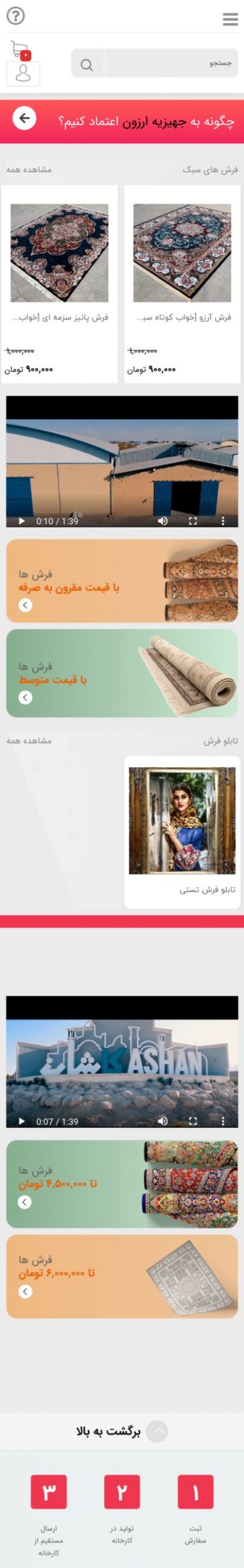 حتما در طراحی سایت فرش صفحه ای ایجاد می شود تا مشتریان عکس ها و فیلم های حضور فیزیکی شما را دیده و پس از کسب اعتماد از وجود شما محصول شما را بخرند. جلب اعتماد قدم اول است و این کار در طراحی اپلیکیشن فرش (در صورت نیاز شما) هم لحاظ می شود.